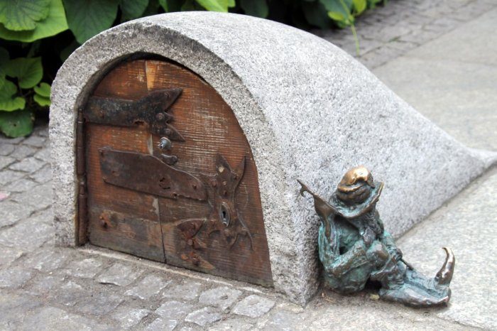 Все гномы разные и имеют свою историю. Многие из них – часть забавного сюжета. Например, человечки с говорящим названием Сизифки, установленные на Свидницкой улице, тщетно пытаются перекатить огромный гранитный шар, однако поскольку каждый толкает в свою сторону, он так и не сдвигается с места.