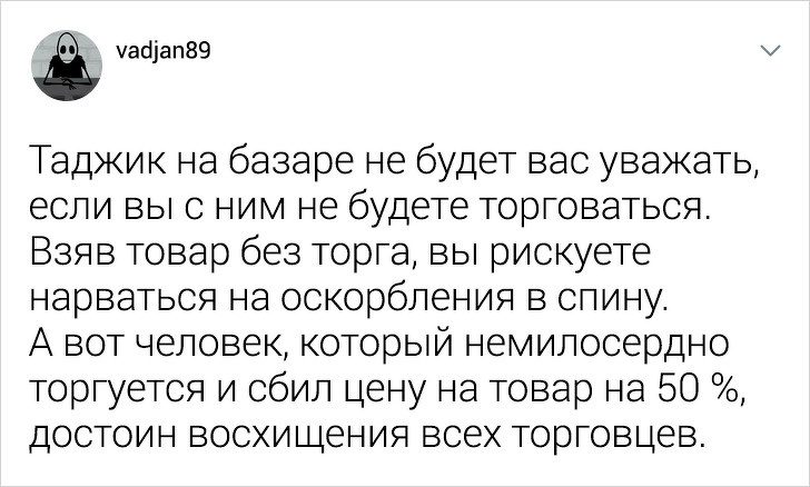 Пользователь твиттера под ником vadjan89 родом из России, но уже продолжительное время живет в Таджикистане. Часто парня удивляют непривычные для европейского человека порядки в этой стране. Своими наблюдениями о быте в Душанбе он делится в интернете.