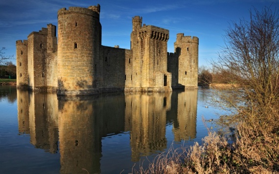 2. Замок Бодиан, обнесенный рвом, находится в графстве Восточный Суссекс и изначально принадлежал семье Дэлингридж, однако в настоящее время находится под патронажем организации National Trust. К сожалению, не смотря на то, что внешне замок выглядит точно так же, как и когда был построен в 14 веке, внутренняя его часть лежит в руинах.