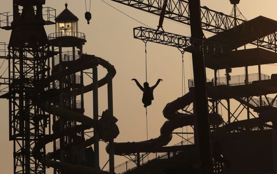 В Сеуле и в его пригородах находится множество тематических парков (парков развлечений) и аквапарков. Здесь проходят различные выступления артистов. Здесь вот некоторые даже летают, будучи подвешенными к крану, 4 мая 2013.