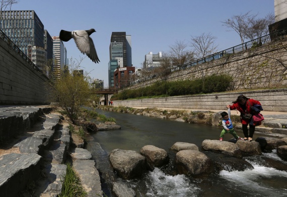 Каменная переправа через речку в Сеуле, 13 апреля 2013.