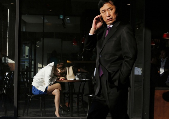 Уставшая в кафе. Центр Сеула, 24 апреля 2013.