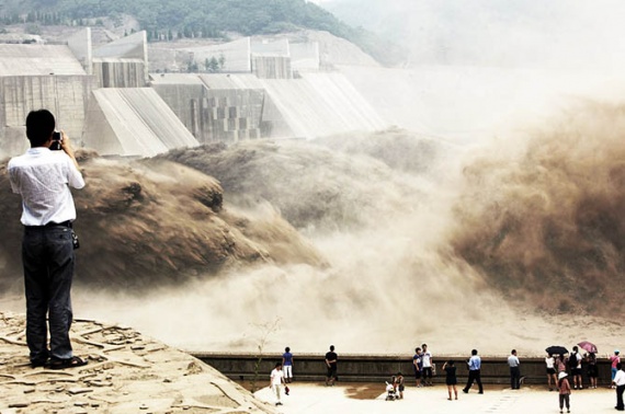 Такой сброс воды позволяет очистить течение реки от ила и предотвратить локальные наводнения. Кстати, Хуанхэ (что означает «Желтая река») — вторая по величине река Китая.Вода течет с невероятной скоростью – 2600 кубометров в секунду.
