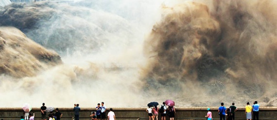 Открытие водохранилища на знаменитой реке Хуанхэ — впечатляющее зрелище. После открытия шлюзов из резервуара несутся огромные потоки воды и песка.