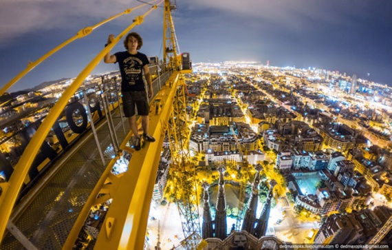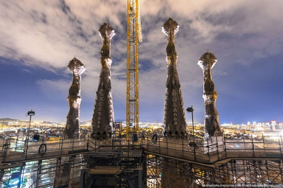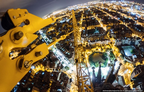 Что касается крана, так сделали мы это ночью. В два часа после полуночи мы перемахнули забор и по строительным лесам в стиле ниндзя через полчаса были уже на верхушке крана. Кран возвышается над собором метров на 50, с него видно всю Барселону.