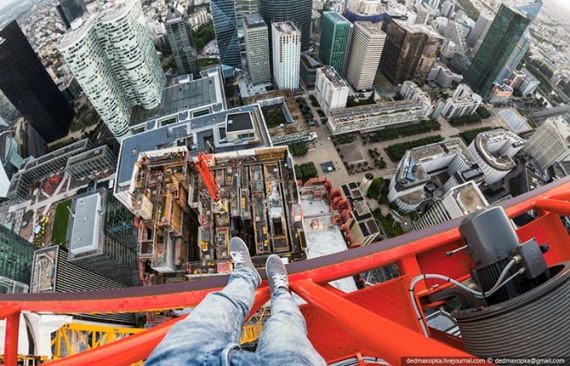 В момент, когда мы поднялись на него, нас сначала охватил ужас, кран медленно стал вертеться вокруг своей оси и повернулся на 90 градусов. Не сразу мы поняли, что виной всему был ветер, который вертел кран, как флюгер. На кадре можно найти Виталю, который что-то постит в Инстаграм или читает Твиттер.