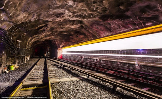 Раз с крышами не повезло, мы решили попробовать попасть в подземку, к тому же метрополитен в Стокгольме – один из самых необычных. Оказалось, что нет ничего проще, чем спрыгнуть со станции и уйти в тоннель. Камеры? Похоже в них никто не смотрит.