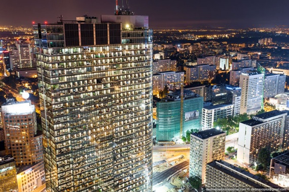 Первой нашей крышей стала стройка недалеко от сталинки. Там и забора-то не было, мы просто зашли в здание, потом в лифт, поднялись на последний этаж, а когда открылись двери лифта, то увидели кучу рабочих. «Панове, панове!» кричали нам вслед, но мы же польского не понимаем, потому, не обращая ни на кого внимания, поднялись на крышу, где благополучно спрятались в строительной люльке. Около часа охранники вместе с рабочими, матерясь, искали нас по верхним этажам и крыше, но безуспешно. Стемнело и мы поснимали ночной город. Это к вопросу, как же мы попадаем на крыши? И такое бывает.