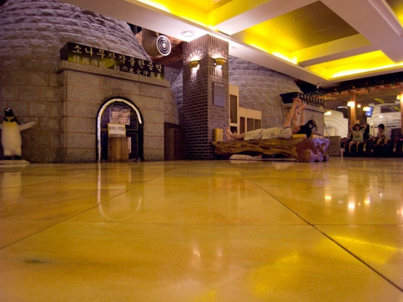 Dragon Hill Spa в Сеуле, Корея, — это настоящий банный «диснейленд»! Сюда приходят целыми семьями, а билеты продаются не на час или два, а на 12 часов. Здесь действительно есть чем заняться. Семь этажей комплекса заняты не только банями и бассейнами, но также и спа-салонами, массажными кабинетами, фитнесс-клубом, кафе и рестораном, и даже площадкой для гольфа. Главная особенность комплекса — оригинальные сухие парные. В одной пол покрыт пластами соли, другая отделана нефритом, поверхность третьей покрыта кипарисом, а четвертая топится сосновыми дровами. Здесь есть и влажные парные и купальни, а также ледяная комната с настоящим снеговиком, где можно пройти сеанс криотреапии. Мужская и женская зоны расположены отдельно, есть комнаты отдыха и красивейший зал в средневековом стиле.