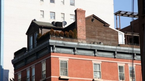 Дом, построенный на одном из зданий в Нью-Йорке (США).