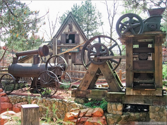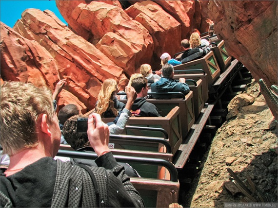 На первой же остановке мы соверенно ошалевшие от детей выскочили, и оказалось, что мы снова попали в Приграничную страну, было решено сходить в «Big Thunder Mountain».