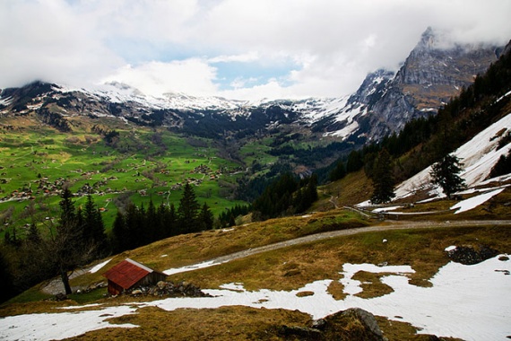 Едем в Гриндельвальд. Летом люди приезжают сюда, чтоб заняться хайкингом, зимой, чтобы покататься на лыжах. Мы, к сожалению, не очень хорошо подгадали со временем года для хайкинга, так как сезон ещё не начался, и практически все высокогорные тропы были завалены снегом. Были открыты всего 2, по ним и решено было погулять.