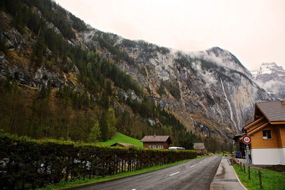 Уже по дороге к Лаутербруннену – коммуне, возле которой находится водопад, стали открываться потрясающие виды с отвесными скалами и стекающими по ним водопадами.