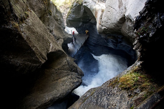 Трюммельбахский водопад прекрасен. Высота его около 150 метров, и состоит он из 10 каскадов, спрятанных внутри горы. Внутри очень шумно и мокро, помимо обычных курток было бы неплохо взять с собой какой-нибудь целлофановый плащ, но кто ж знал. Промокли до нитки!