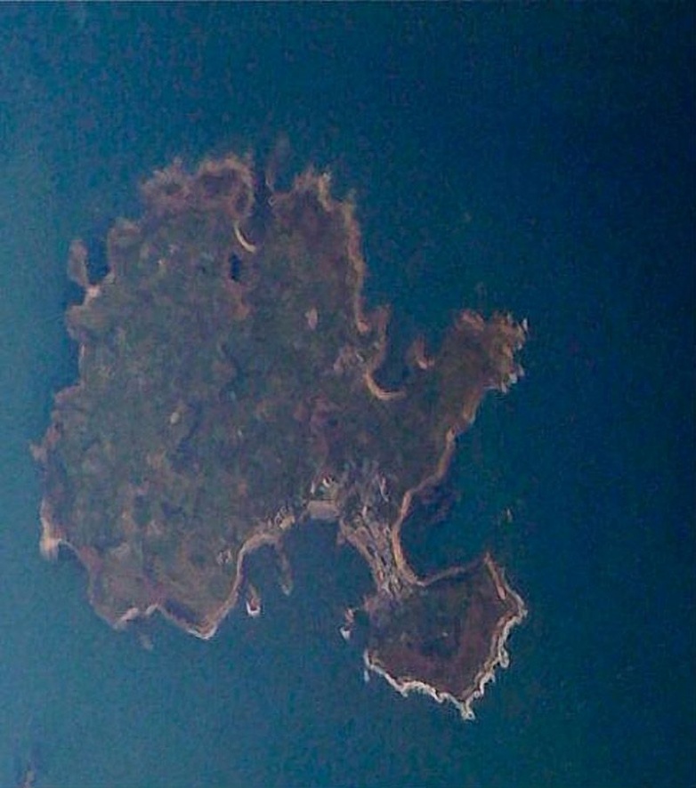 Эта фотография Галапагосских островов была сделана из космоса в 2002 году при помощи устройства MODIS, установленного на борту спутника NASA. Огромный «морской конек» – это Исабела – самый крупный и самый молодой из Галапагосских островов. На острове находятся 6 вулканов (4 из которых действующие) и проживает около двух тысяч человек.