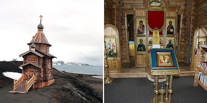 Строительство церкви заказал в 1990-ых гг. патриарх Алексий II. Это самая южная православная церковь в мире. Постоянно тут находится, как минимум, один монах-доброволец из Троице-Сергиевой лавры в России. Высота церкви – 13 метров. Сначала ее построили в России, а уже потом переместили в Антарктику.