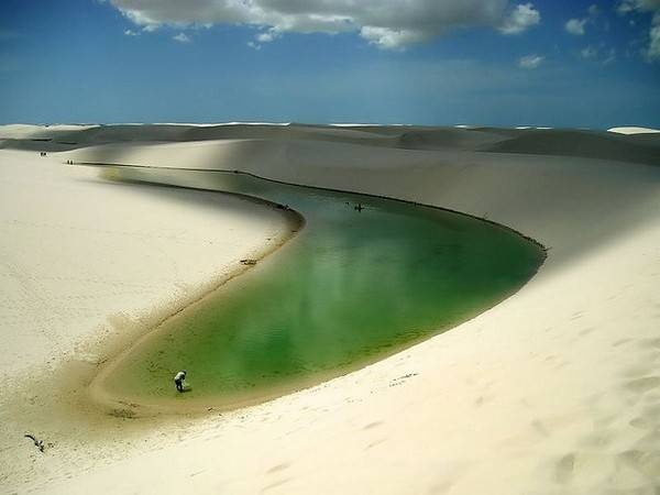 Это красивое озеро расположено в национальном парке Ленсойс Мараньнсис, Maranhao, Бразилия. Оно сформировано в основном из пресной воды, благодаря дождям, которые льют тут в течение первых шести месяцев каждый год, а в последующие месяца вода испаряется.
