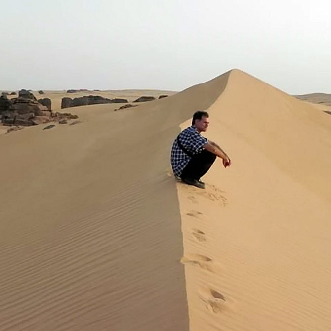 Майк в песках Сахары на юге Алжира, июнь 2013 года.