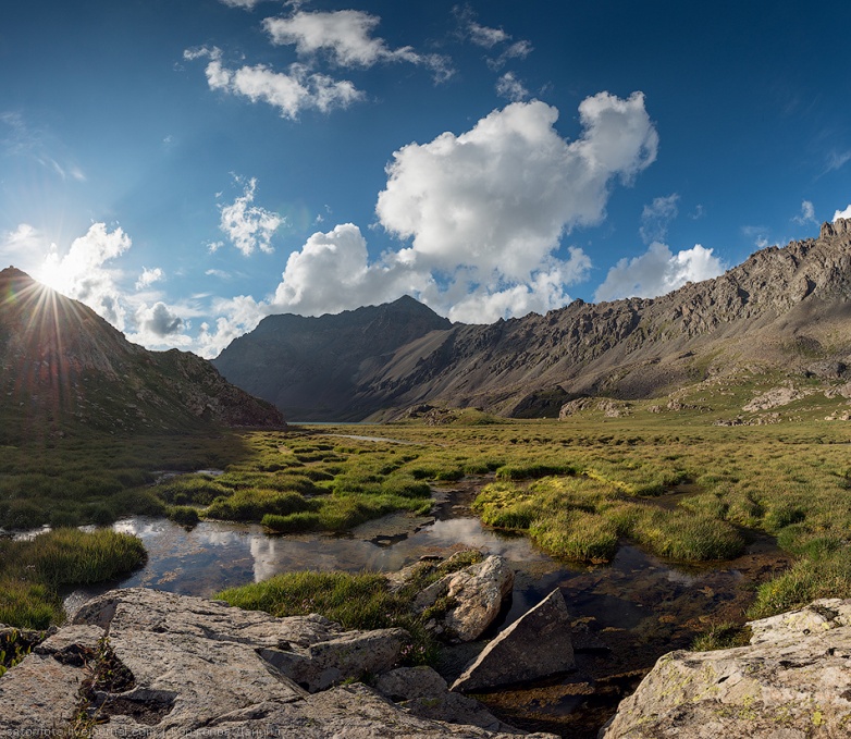 2. После города первые дни так непривычно чувствовать себя в этом мире! Здесь свежий воздух, ветер в лицо, тяжелые подъёмы, и вкуснейшие обеды у журчащих ручьёв. Вспоминаешь – и не веришь поначалу, что существуют такие миры. Думаешь – приснилось. Но закрыв глаза, видишь и чувствуешь, как ветер приглаживает траву на вершинах, а горы подхватывают облака, играя с ними на лету.