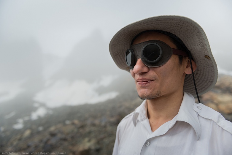 20. Проваливаемся по пояс в мокрый снег, идти тяжело. Ледник закрытый, с большим количеством снега – поэтому идём в связках. Проходим остатки первого «метеорита».