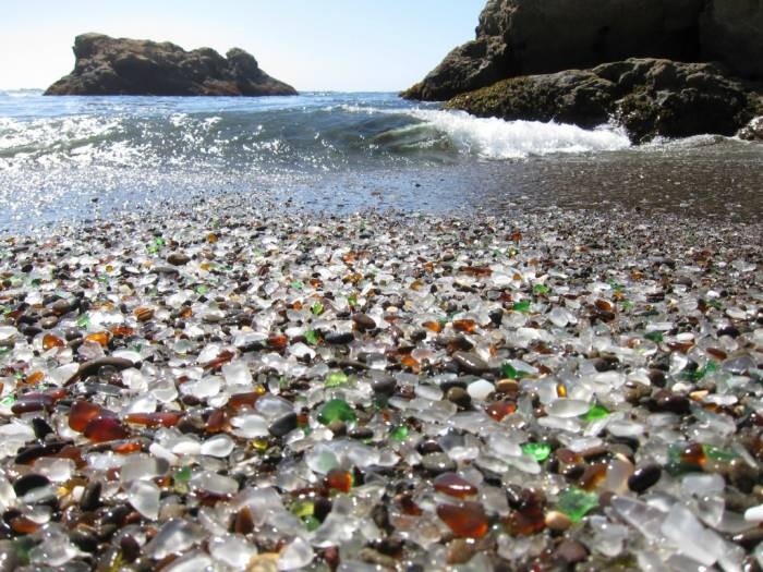 Однако редко, но все же бывают исключения — мусор создает красоту. Есть одно интересное местечко — Glass Beach, Fort Bragg, California, USA (Стеклянный пляж, Форт Брэгг, Калифорния, США). Удивительно это место своим необычным пляжем. В первой половине XX века на территории, где находится этот пляж, была свалка. В 60-е годы свалку закрыли, и с тех пор мусор был предоставлен самому себе. Горы битого стекла, пластмассы и прочего мусора так и валялись на берегу под теплыми калифорнийскими лучами, омываемые морскими прибоями и обдуваемые морскими бризами.