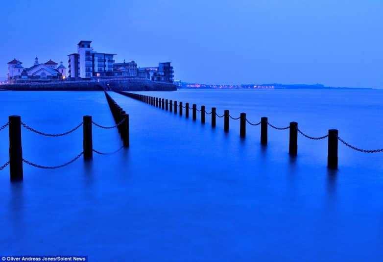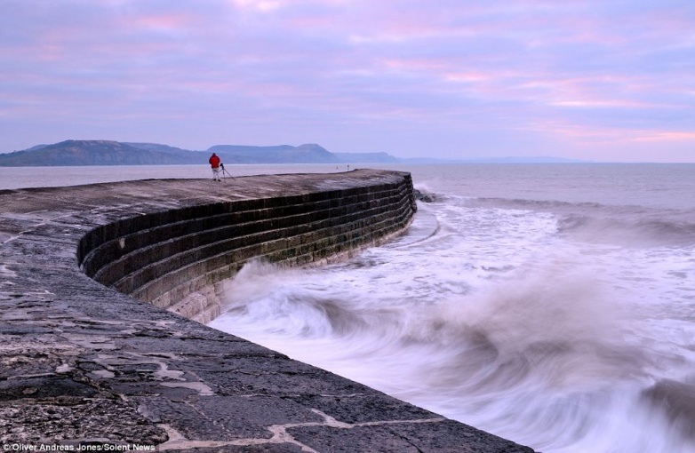 2. Оливер путешествует по родной Великобритании с отцом, снимая, в основном, на закате и на рассвете. На фото: разбивающиеся о пирс волны на длинной выдержке.
