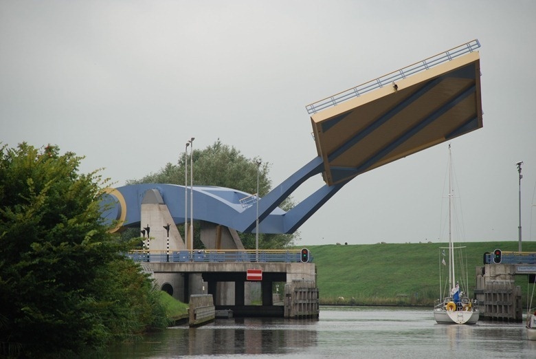 СлауэрхофбругСлауэрхофбруг — полностью автоматический мост в городе Леувардене, в Нидерландах. Во время развода перемещается секция дороги, вместе с дорожным полотном. Сооружение также известно, как “Летающий мост”. Его пролет может быстро и эффективно быть поднят и опущен. Это позволяет быстро проходить водному транспорту, не на долго останавливая дорожное движение. Палуба составляет 15 на 15 метров и окрашена желтым и синим цветами, как на флаге Леувардена. Такое архитектурное решение позволило значительно упростить проект, сделав его дешевле, и при этом удобнее.
