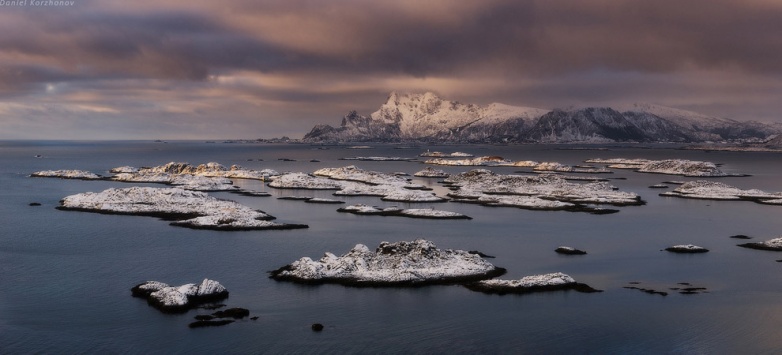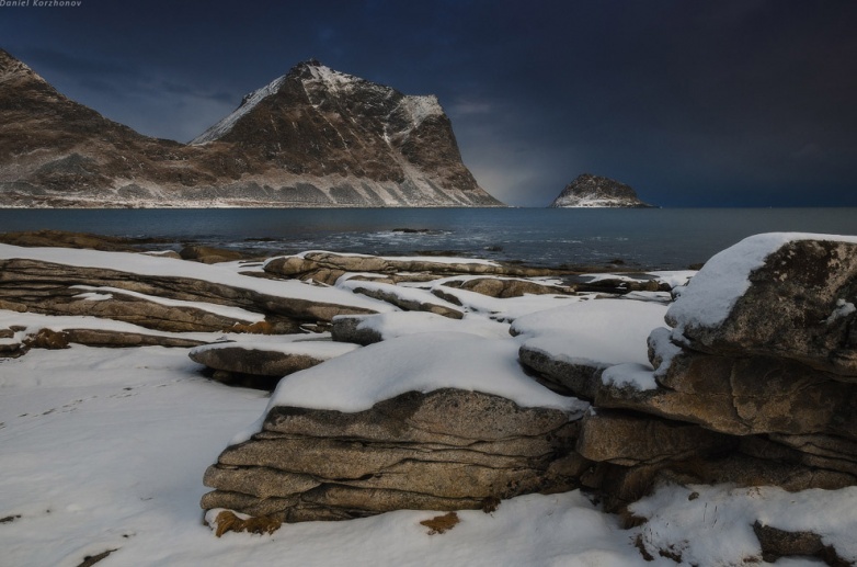 На Лофотенах чудесно заниматься хайкингом — даже зимой. Снега тут немного, поэтому часто на вершину можно забраться и без снегоступов. А виды потрясают воображение. Вершины-то всего по 300-400 метров, но выглядят зубцы не хуже заоблачных вершин Памира. Например, с хайкинга над Рамбергом: