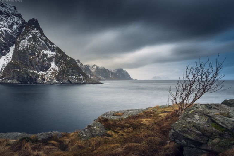 Ожерелье Лофотенских островов расположено под боком у Гольфстрима и растянуто на добрые две сотни километров, поэтому погода здесь непредсказуема и зачастую дарит чудесные моменты фотографам: грозовое небо, штормовое море. Лофотены находятся на границе континентального и морского климатов, поэтому на архипелаге всегда происходит борьба стихий.