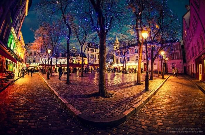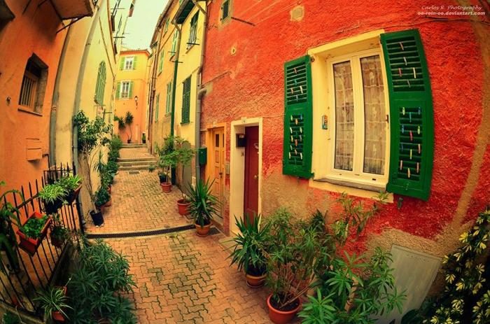 В своих городских походах Карлос ищет такие места, которые наиболее правильно и точно передают дух города. Маленькие узкие улочки, разноцветные домики, красные крыши, фонари и деревья.