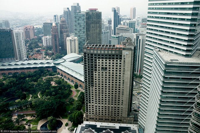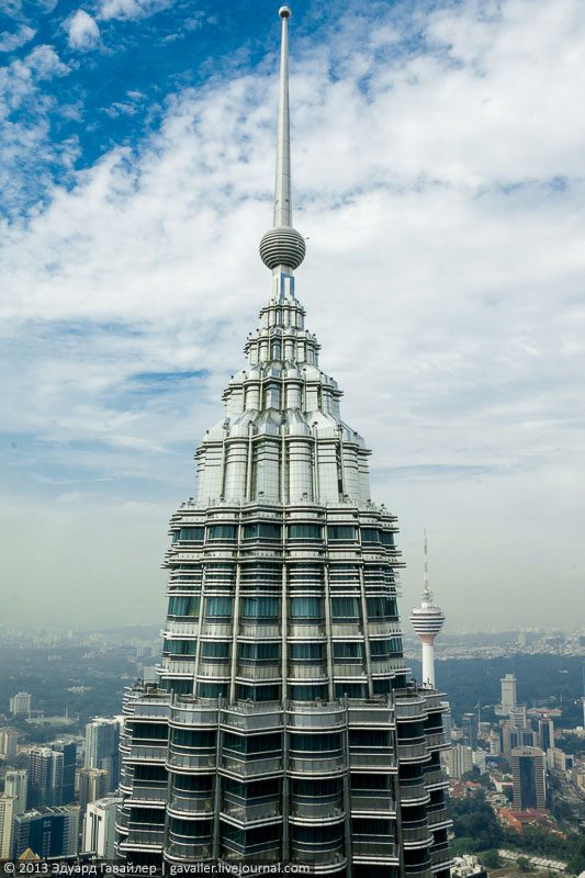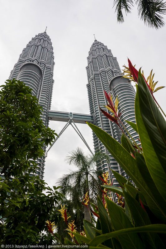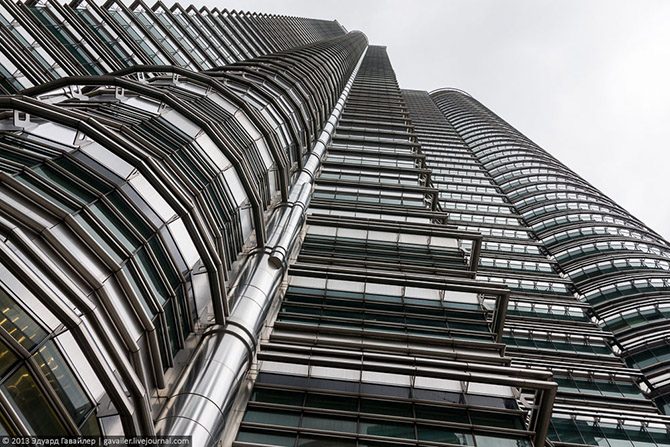 Самыми высокими в мире башнями-близнецами, а также архитектурным символом Малайзии являются башни Петронас (англ. Petronas Twin Towers) в Куала-Лумпуре. Некоторое время назад (до 2004 года) комплекс Патронас Тауэрс как единое целое считался самым высоким зданием в мире. Сейчас он расположен только лишь на восьмом месте. 452 метра в высоту, 88 этажей, 39 лифтов в каждой из башен, 32.000 окон, 1.800 дверей. Поднимемся наверх и насладимся головокружительными видами?