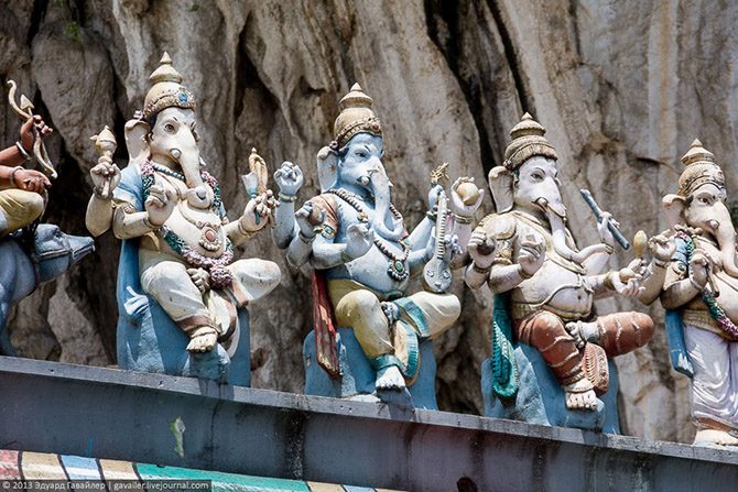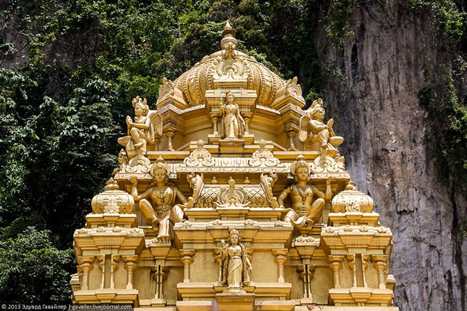 В дюжине километров от Куала-Лумпура расположен индуистский пещерный храм Бату Кейв (Batu Caves).