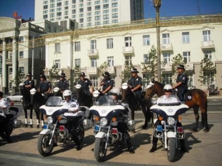 Полиция есть как конная, так и моторизированная.
