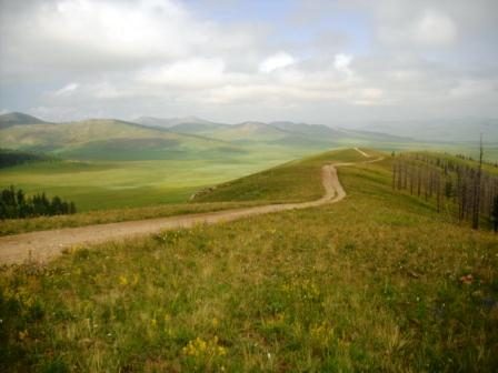 Сразу же после пересечения границы с Бурятией нашему взору открылись зеленые степи, окаймленные невысокими горами, с сочной травой, пасущимися стадами домашних животных (овцы, козы, верблюды, лошади, коровы, яки) самых разных цветов. Горы разнообразные: пологие и с острыми вершинами, поросшие лиственницами, либо без деревьв, но с альпийскими лугами. По пути встречались также участки пустыни.