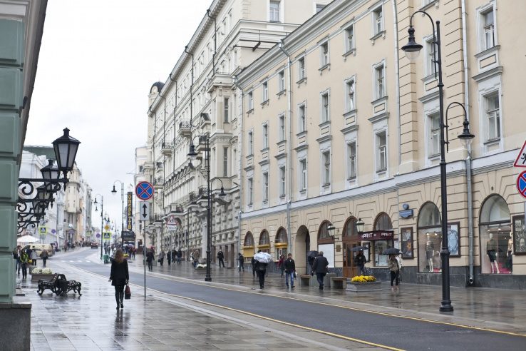 Самая последняя из центральных пешеходных улиц. Сделать ее абсолютно пешеходной не вышло из-за нескольких зданий госструктур (Генеральная прокуратура, Совет Федерации), сотрудникам которых оставили одну полосу посередине — по идее, никто другой заезжать сюда не может, о чем и сообщают многочисленные знаки.