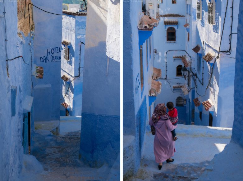 Как позже оказалось, Шефшауэн — один из самых чистых городов Марокко. Но город уже сильно испорчен туристами: местные жители наотрез отказываются фотографироваться. Детвора реагирует совершенно по-разному на чужестранца: кто-то хочет поиграть, поговорить, а кто-то зло смотрит и норовит сделать пакость.