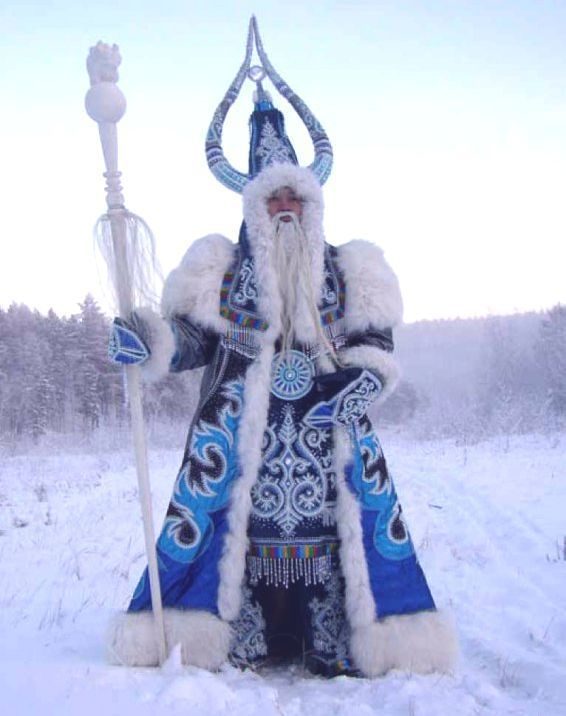 Ямал Ири. В Монголии Дед Мороз похож на пастуха. Он одет в мохнатую шубу и большую лисью шапку. На боку у него табакерка, кремень и огниво, а в руках — длинный кнут.