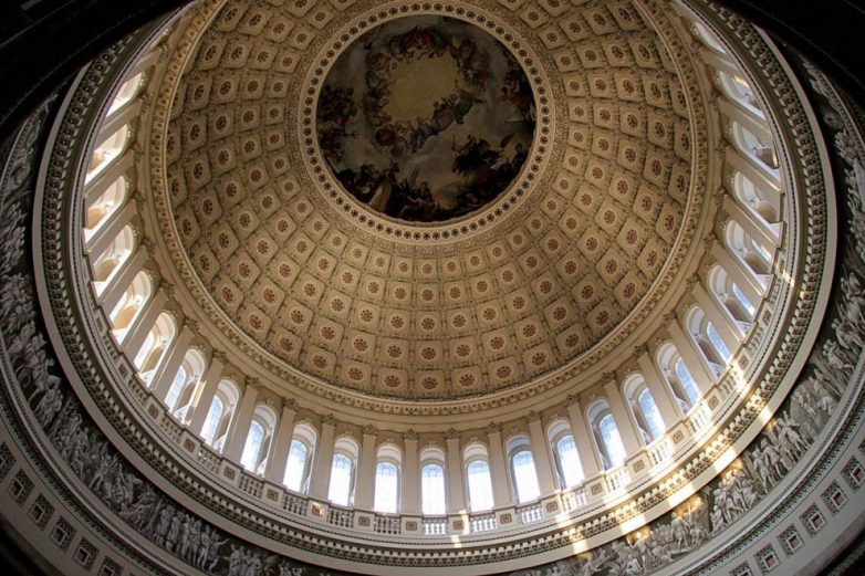 20. Солнечный свет озаряет купол Капитолия. На куполе, на высоте 54 метра от пола ротонды расположена фреска Константино Брумиди под названием «Апофеоз Вашингтона».