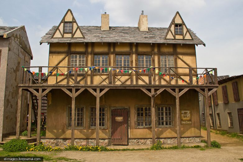 Во втором сезоне действие происходит в европейском портовом городе XVIII века – его и возвели в натуральную величину, включая корабль. Все постройки – из бруса, ДСП и пластика, но выглядят так натуралистично, как только возможно. Когда съемки кончились, киношники собрали аппаратуру и уехали, а город остался. Так и стоит. Его изрядно подмочило дождями, потрепало ветром, и есть основания предполагать, что век его будет недолгим, но пока заброшенный киногород выглядит как настоящий.