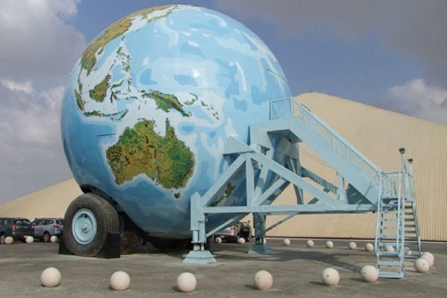 Так исторически сложилось, что арабы — кочевой народ, пересекающий пустыню со своими караванами. В настоящее время ОАЭ является богатым государством, однако вековая привычка вести кочевой образ жизни привела к постройке мобильного дома для путешествий по пустыне. Дом принадлежит одному из членов королевской семьи эмирата Абу — Даби, шейху Хамаду. Внешне даже трудно представить что это жилище человека — здание представляет собой сферу с нарисованной на ней картой мира, проще говоря — глобус на колесах. Как и Земной Шар, мобильный дом приплюснут на «полюсах», высота сферы составляет 12 метров, а ее ширина — 20 метров. Поэтому мобильный дом шейха Хамада — наша планета в миниатюре. Внутри дом — глобус имеет 4 этажа, на которых находятся 6 ванных комнат и 4 спальни. Шейх Хамад говорит что можно из собственного жилища нетрудно сделать шедевр, конечно помимо фантазии, имея достаточно денег. В 1993 году мобильный дом шеха Замада занесен в Книгу рекордов Гиннеса.