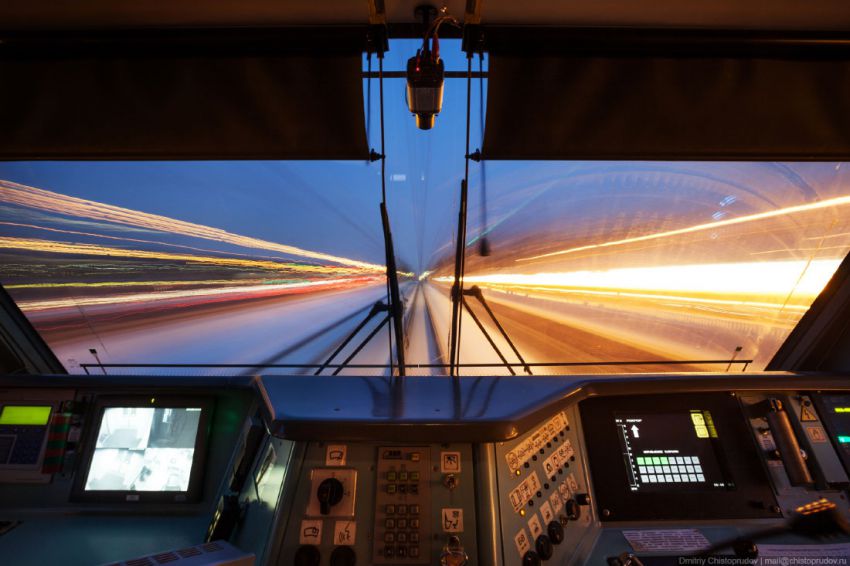 Автор давно хотел осуществить свою давнюю мечту — проехать в кабине электропоезда и поснимать открывающиеся с неё живописные виды. И вот позвав своего друга и устроившись поудобнее в теплой кабине машиниста, они прокатились от Белорусского вокзала до аэропорта Шереметьево.