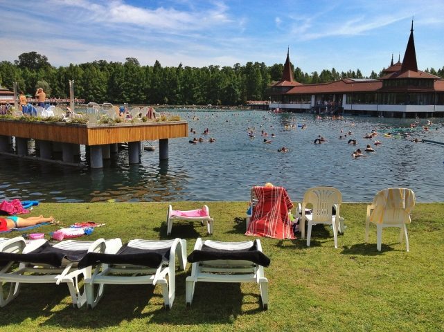 Уютный венгерский курортный городок Хевиз получил свое название благодаря крупному термальному озеру, на берегу которого он расположен. Температура в озере никогда не опускается ниже 23 °С, поэтому поправлять свое здоровье здесь можно круглый год. Лечебный эффект заключается в теплой воде и содержащемся в ней газе. Отдельного упоминания заслуживают лечебные грязи – они богаты кальцием и натрием. Находиться в озере желательно в специальных купальнях и в вертикальном положении, чтобы газообразные вещества в форме пузырьков оседали на коже и через нее проникали в организм.