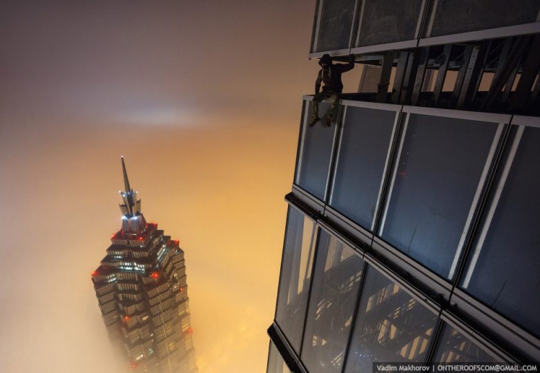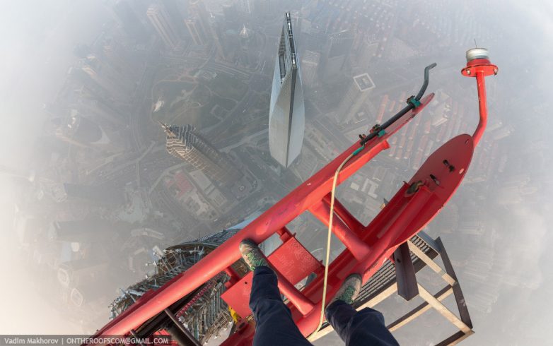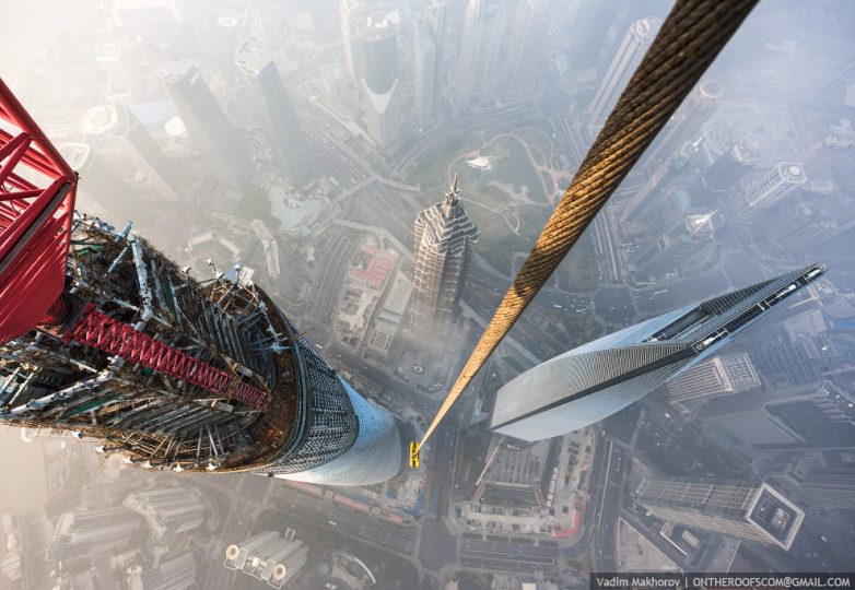 Полторы недели назад во время китайского Нового года, когда вся страна отдыхала, ни одна стройка не работала, все только и делали, что взрывали петарды под окнами своих домов. В эти дни любители экстрима взобрались на башню, на стрелу крана, верхняя точка которой предположительно сейчас на высоте 650 метров. О том, как это было, на фото.