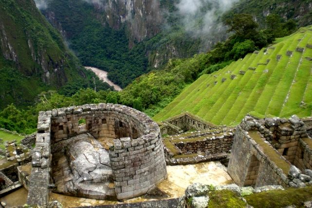 Инки построили город, не используя каких-либо скрепляющих смесей – все строения Мачу-Пикчу держатся за счет собственного веса (камни сложены как пазл). На случай землетрясений, которые случаются здесь достаточно часто, инки оставляли при строительстве щели в кладке, а сами стены возводили под углом.