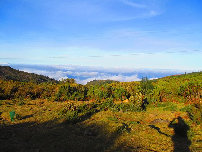 Именно здесь самое ясное небо за все время пребывания на Мадейре. Дело было в том, что все облака были у нас под ногами. Вид на северную часть острова, откуда мы пришли. Остается только догадываться, какие прекрасные виды тут открываются, когда нет облаков.