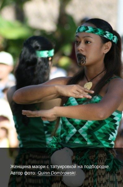 Женщины племени маори – коренного населения Новой Зеландии – издавна украшают себя татуировками. В отличие от мужчин, которые покрывали сложными узорами все тело, женщины разрисовывали чаще всего только лицо и подбородок. Считалось, что девушки больше нуждаются в эмоциональном «питании», поэтому «моко» (татуировка) покрывала область вокруг рта. Кроме того, такое необычное украшение привлекало представителей противоположного пола.