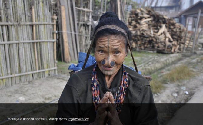 Женщины народа апатани, проживающего на северо-востоке Индии, прокалывают крылья носа и вставляют в отверстия пробки, которые называются Yaping Hullo. Считается, что эта традиция возникла из-за того, что давным-давно женщины этого народа были самыми красивыми в округе и страдали от повышенного внимания со стороны мужчин из других племен. Чтобы у тех не возникло желания увести красавиц, придумали такое отпугивающее «украшение». Кроме того, девушкам делали татуировки в виде прямой линии от подбородка до кончика носа. Со временем пробки в носу стали обычным элементом внешнего вида женщин и отличительной особенностью племени. Однако в последнее время молодое поколение народа апатани предпочитает украшать себя иными способами.