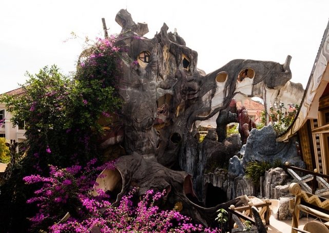 Отель Hang Nga настолько далек от традиционных архитектурных стандартов, что его прозвали Crazy house. Ни одно из окон здания не имеет идеально квадратной или круглой формы. Отель также называют «шалашом на дереве» и «паутинным шале». Хозяйка гостиницы – дочь экс-президента Вьетнама, когда-то изучавшая архитектуру в Москве.