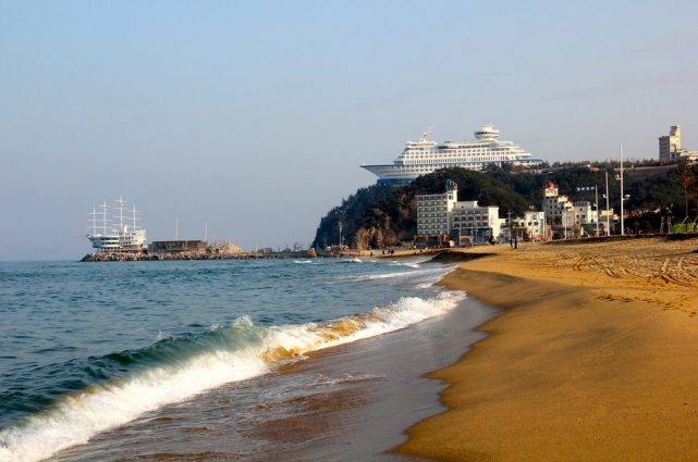 Круизный лайнер-отель Sun Cruise Hotel в Южной Корее не страшен тем, кто страдает морской болезнью. Гигантский корабль, стоящий на обрыве у моря, построили для привлечения туристов в 2001 году, и изначально не планировали запускать в океан. Отель включает 211 номеров, рестораны, ночной клуб, бассейн с морской водой и фитнес-зал.