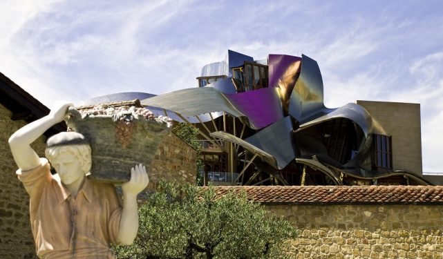 ВинодельняMarqués de Riscal, расположенная в испанском городке Эльсьего, стала знаменита на весь мир после открытия здесь в 2006 году футуристического винного отеля. При винодельне действует целый туристический комплекс «Город вина», включающий крупнейший в Европе винный музей, рестораны и спа-центр с процедурами винотерапии. Здание отеля облицовано титановыми листами розовых, пурпурных, золотых и серебряных оттенков, которые символизируют красное вино и цвет фирменной оплетки бутылок Marqués de Riscal.
